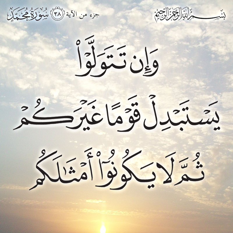 أما جواب الشرط في الآية ﴿يَسْتَبْدِلْ قَوْمًا غَيْرَكُمْ ثُمَّ لَا يَكُونُوا أَمْثَالَكُم﴾، فهو يقرر قانونًا إلهيًا ثابتًا لا محاباة فيه. فدين الله ماضٍ ومنصور، والأمانة لا تبقى في يد من لا يقيم حقها. فإن تخلى قوم عن مسؤوليتهم، أتى الله بقوم آخرين ليسوا على شاكلتهم في التخاذل والضعف، بل هم أفضل منهم إيمانًا وثباتًا وعزيمة. هذه الصفة "ثم لا يكونوا أمثالكم" هي جوهر الاستبدال؛ فهو ليس مجرد تغيير ديموغرافي، بل هو ارتقاء نوعي في حمل الأمانة.