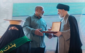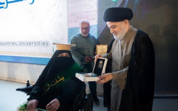 كرّم المتولي الشرعي للعتبة العباسية المقدسة سماحة العلّامة السيد أحمد الصافي الطالبة المتخرّجة زهراء حيدر من ذوي الهمم، ضمن فعاليات الحفل الختامي لتخرّج طالبات الجامعات العراقية والدول الإسلامية (دفعة بنات الكفيل التاسعة).