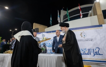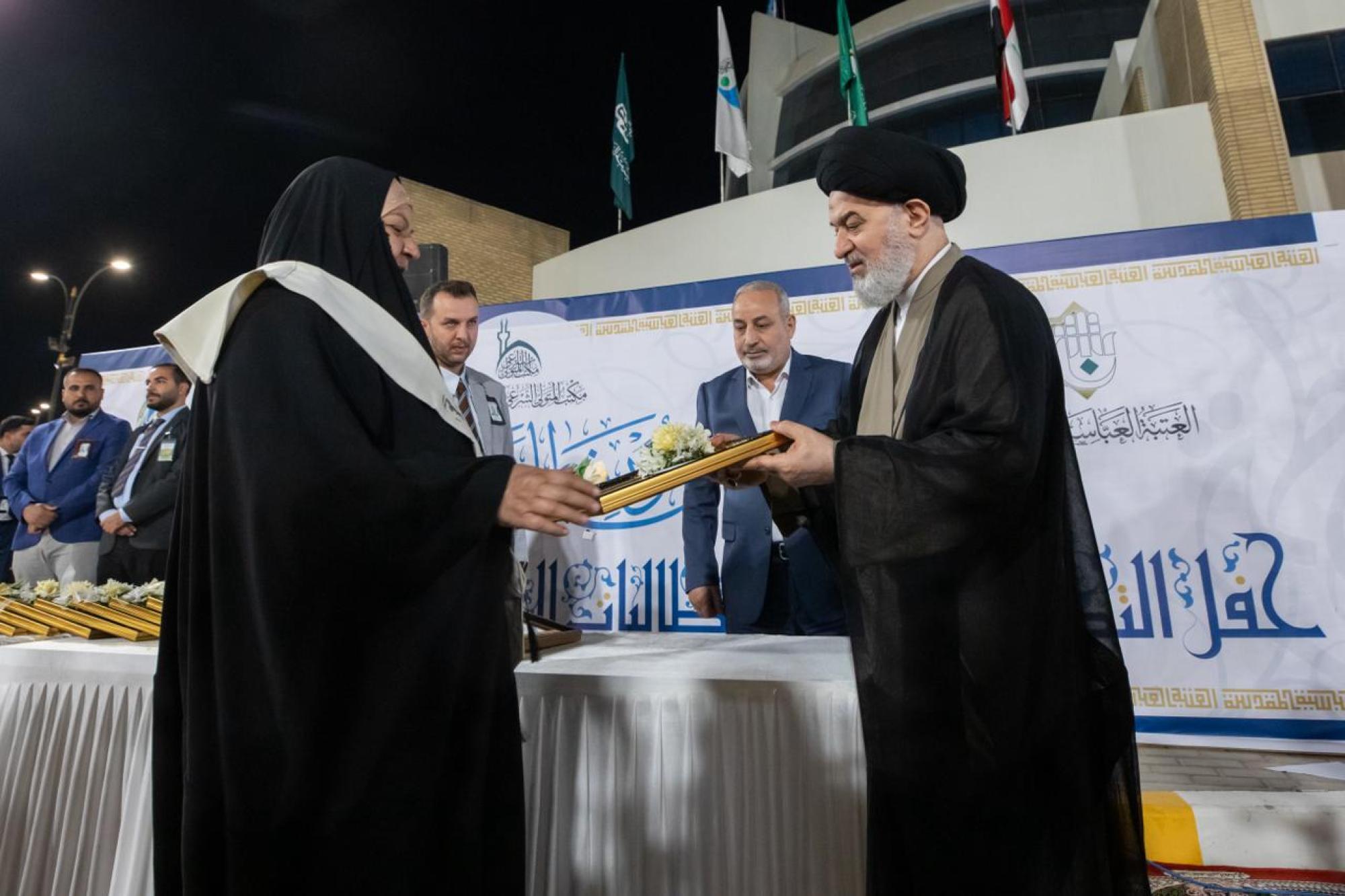 كرّم المتولي الشرعي للعتبة العباسية المقدسة سماحة العلّامة السيد أحمد الصافي عددًا من عوائل شهداء العراق، ضمن فعاليات الحفل الختامي لتخرّج طالبات الجامعات العراقية والدول الإسلامية (دفعة بنات الكفيل التاسعة).