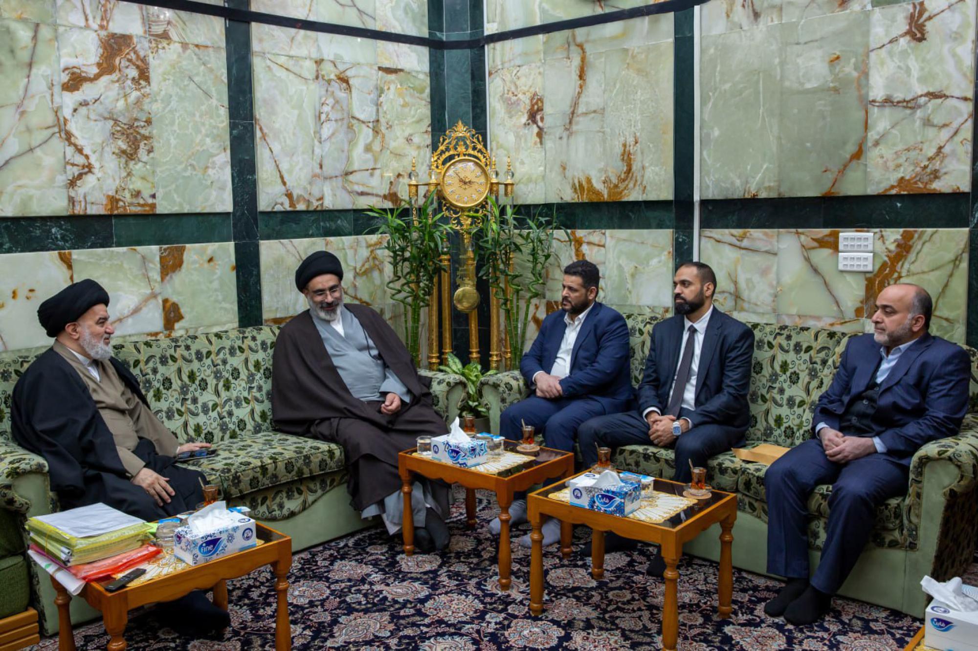 جاء ذلك خلال استقبال سماحته، الأمينَ العام للأمانة العامّة للمزارات الشيعية في العراق السيد علي صاحب جبر والوفدَ المرافق له، واستماعه لشرحٍ عن خطط الأمانة العامّة لتطوير الجوانب الخدمية في المزارات، وإقامة الأنشطة الثقافية والفكرية.