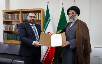 في إطار التعاون الفكري المشترك بين العتبتين زار وفد من مؤسسة الوافي للتوثيق والدراسات التابعة للعتبة العباسية المقدسة برئاسة السيد رئيس القسم المهندس أحمد صادق (دام توفيقه) مكتبة العتبة الرضوية المقدسة والتقى بالسيد جلال الحسيني رئيس هيأة المكتبات والمتاحف ومركز الوثائق وأهدى له نسخة من موسوعة فتوى الدفاع الكفائي إلى المكتبة المباركة.