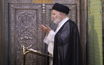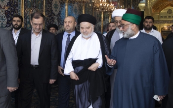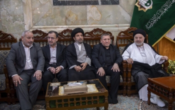 وكان في استقباله الأمين العام للعتبة المقدسة السيد مصطفى مرتضى آل ضياء الدين، ونائبه وأعضاء مجلس إدارة العتبة العباسية المقدسة وخدمة المرقد الشريف.