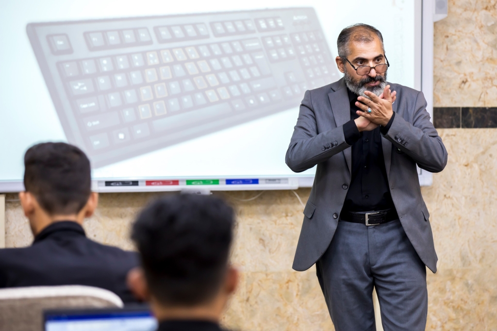 وقال مدرب الدورة السيد مصطفى الحكيم: ان "الدورة تضمنت عدة محاور أهمها الطباعة باللمس ومميزاتها وكذلك أنواع لوحة المفاتيح وتقسيماتها وقاعدة الارتكاز وتعريف الأصابع على المفاتيح فضلا عن بناء الذاكرة العضلية، وتخللها اختبار قبلي وتمارين عملية، واستمرت الدورة لمدة (4) أيام".