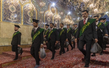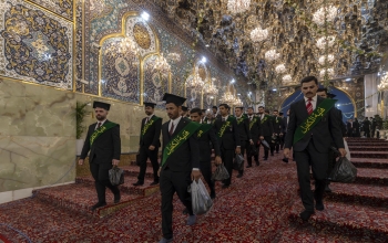 شهد صحن مرقد أبي الفضل العباس (عليه السلام) وصول طلبة الجامعات العراقية المشاركين في فعاليات حفل التخرج المركزي، الذي تنظمه العتبة العباسية المقدسة.