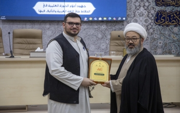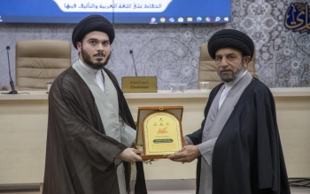 كرّم المتولي الشرعي للعتبة العباسية المقدسة سماحة العلّامة السيد أحمد الصافي، المشاركين في الندوة العلمية التي أُقيمت بمناسبة اليوم العالمي للغة العربية في محافظة النجف الأشرف.