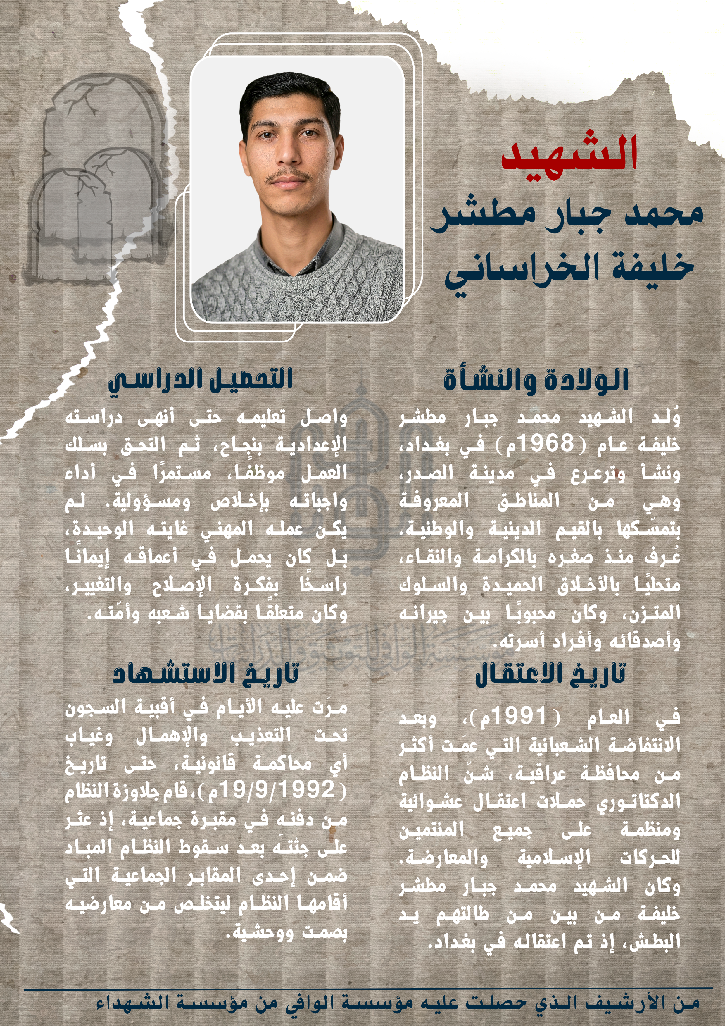 بقي اسمه خالدًا في ذاكرة الأحرار، حاملًا راية الصبر والصمود، وشاهدًا على مرحلة سوداء من تاريخ العراق سطّر فيها الشهداء ملاحم الفداء.