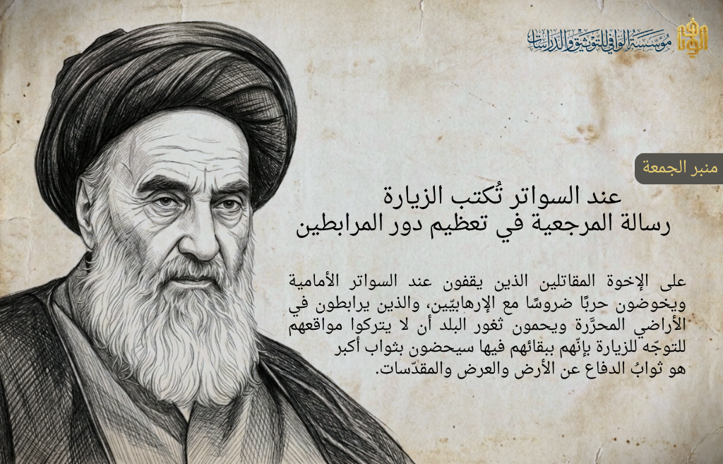 على الإخوة المقاتلين الذين يقفون عند السواتر الأمامية ويخوضون حربًا ضروسًا مع الإرهابيّين، والذين يرابطون في الأراضي المحرَّرة ويحمون ثغور البلد أن لا يتركوا مواقعهم للتوجّه للزيارة بإنّهم ببقائهم فيها سيحضون بثواب أكبر هو ثوابُ الدفاع عن الأرض والعرض والمقدّسات، بالإضافة الى أنّ عشرات الآلاف من الزائرين والزائرات سيشركونهم في مثوبة زياراتهم فتجتمع لهم مثوبةُ القتال في سبيل الله ومثوبةُ زيارة الإمام الحسين (ع) ويا له من حظٍّ عظيم.