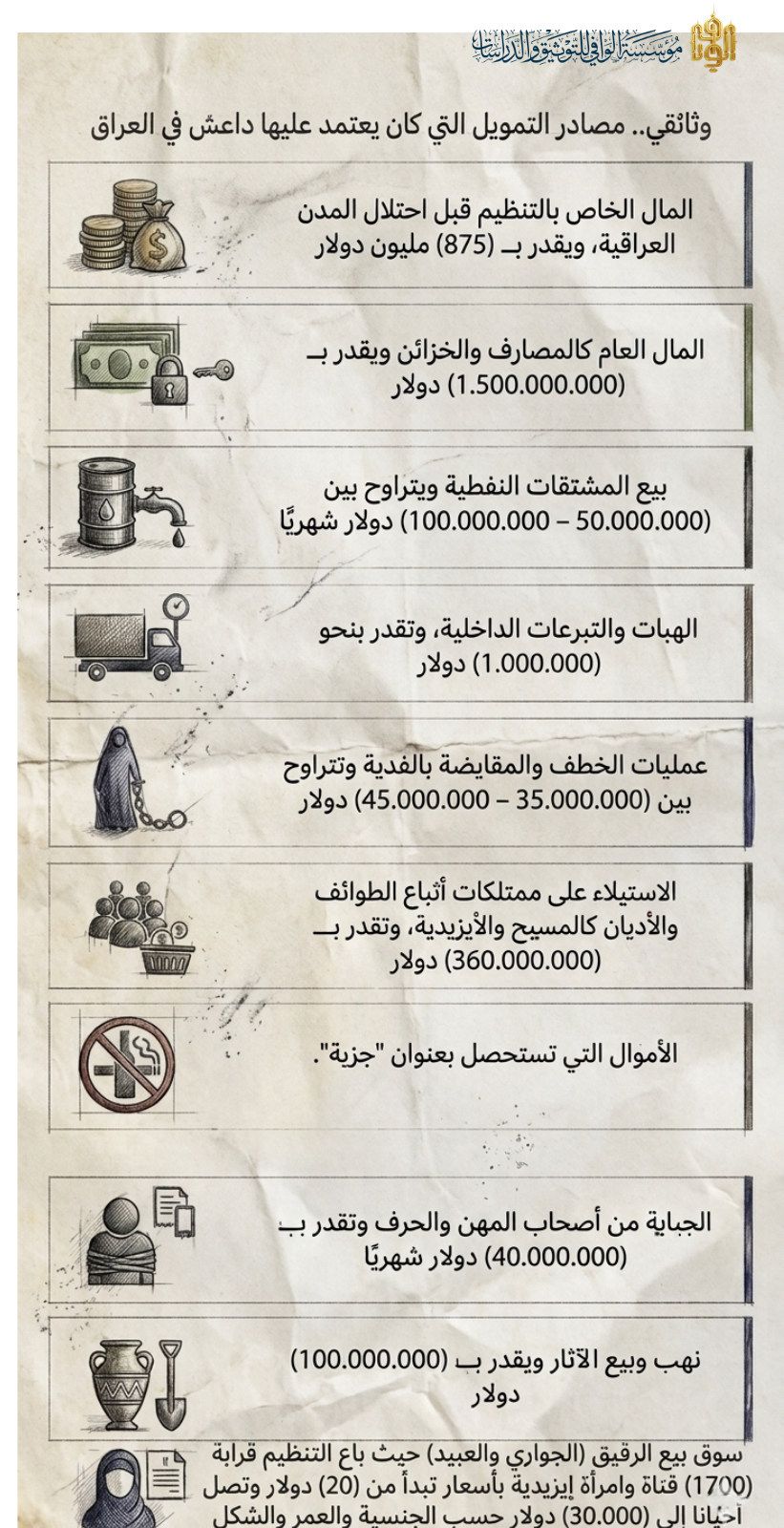 مصادر التمويل التي كان يعتمد عليها داعش في العراق