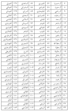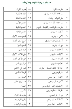 وطيا قائمة بأسماء العشائر (١) التي تشكل منها اللواء نذكرها بحسب الترتيب الأبجدي وليس بحسب الأعداد القتالية؛ لتحتفظ كل عشيرة بخصوصيتها وأعدادها، وتكون شريكة في النصر والفخر والتاريخ المشرف لها ولأبنائها.