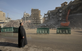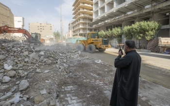 تفقّد الأمين العام للعتبة العبّاسية المقدّسة، السيد مصطفى مرتضى آل ضياء الدين، سير أعمال هدم الأبنية المحيطة بمرقد أبي الفضل العباس (عليه السلام)، في منطقة باب بغداد بمدينة كربلاء.