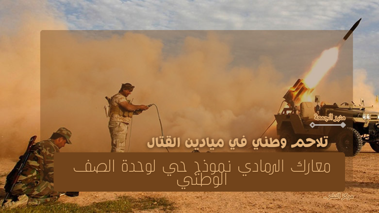 تواصل القوات الأمنية البطلة في جهاز مكافحة الإرهاب وغيره من صنوف القوات المسلحة ومعهم المتطوعون الأبطال والغيارى من أبناء العشائر منازلة الإرهابيين في مناطق مختلفة، ولا سيما في عدد من أحياء مدينة الرمادي وغيرها في محافظة الأنبار، وفي الوقت الذي نقدر ونثمن عالياً إنجازاتهم وانتصاراتهم نؤكد مرة أخرى على ضرورة مشاركة عدد أكبر من أبناء هذه المناطق في هذه المعارك خصوصاً أبناء العشائر الغيارى ممن عُرفوا بحميتهم وغيرتهم على العراق ووحدته وكرامته وعزة شعبه، كما أن مشاركة إخوانهم من المتطوعين من مناطق أخرى في هذا المعارك تزيدهم اقتداراً عسكرياً وقوة معنوية تعزز قدراتهم الفعلية وتعكس تلاحماً وطنياً يثبت وحدة الهدف وشعور الجميع بالانتماء الى العراق الواحد الموحد ويفوت الفرصة على من يريد التفرقة بين من هبوا من مناطق متعددة الانتماءات في سبيل تخليص البلد من الإرهاب الداعشي..
