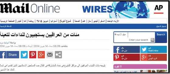 نشر موقع صحيفة (Daily Mail) بتاريخ 14 / 6/ 2014، خبراً بعنوان (مئات من العراقيين يستجيبون لنداءات التعبئة).