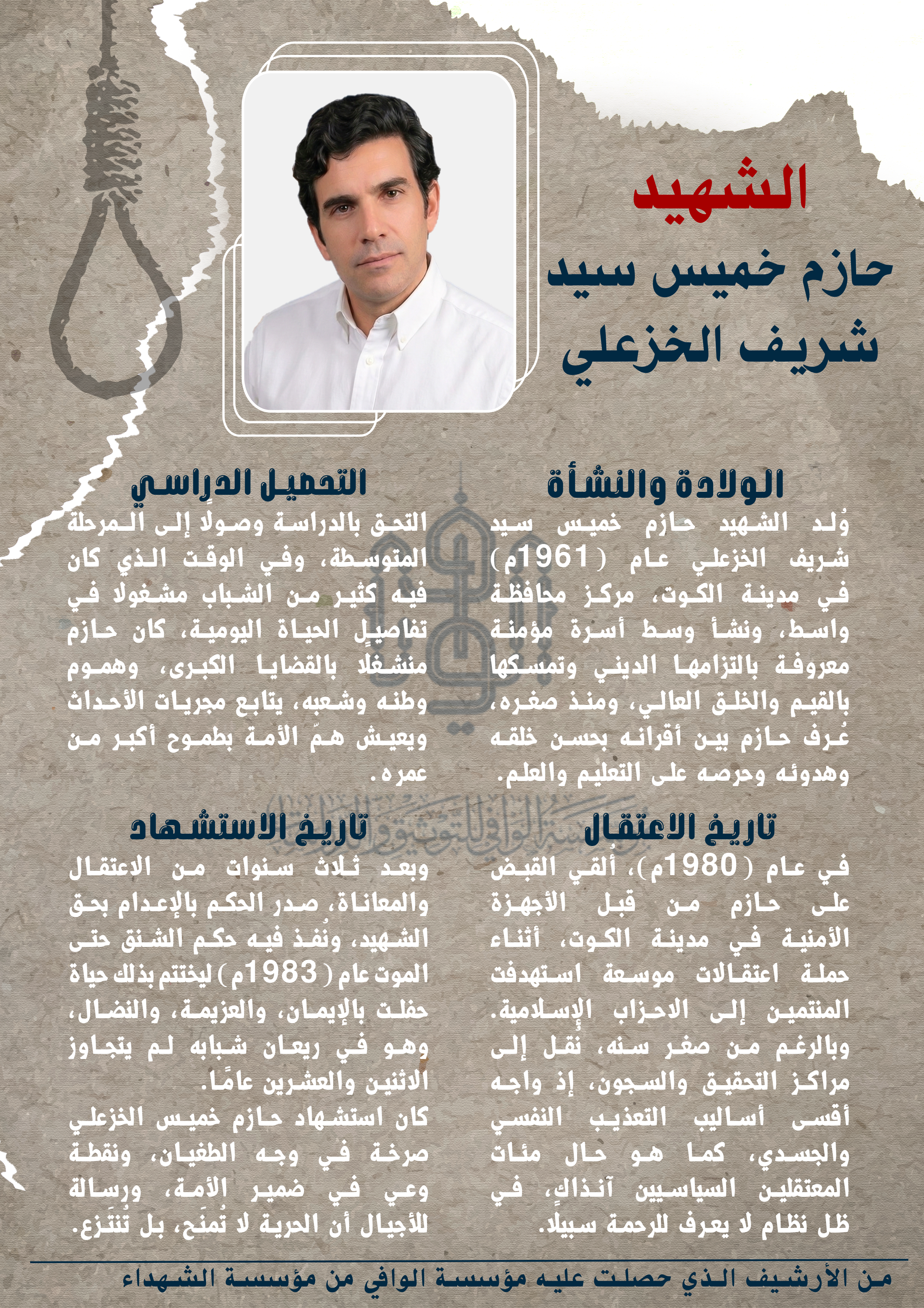 كان استشهاد حازم خميس الخزعلي صرخة في وجه الطغيان، ونقطة وعي في ضمير الأمة، ورسالة للأجيال أن الحرية لا تُمنَح، بل تُنتَزع بتضحيات الأحرار.