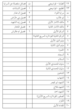 وطيا قائمة بأسماء العشائر (١) التي تشكل منها اللواء نذكرها بحسب الترتيب الأبجدي وليس بحسب الأعداد القتالية؛ لتحتفظ كل عشيرة بخصوصيتها وأعدادها، وتكون شريكة في النصر والفخر والتاريخ المشرف لها ولأبنائها.