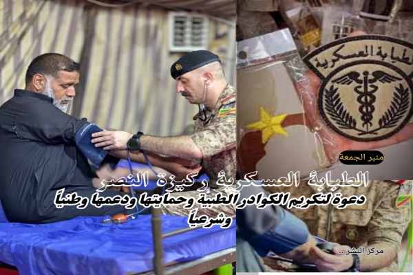 الطبابة العسكرية ركيزة النصر: دعوة لتكريم الكوادر الطبية وحمايتها ودعمها وطنيًا وشرعيًا